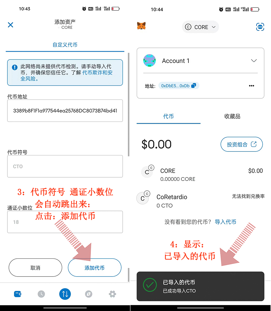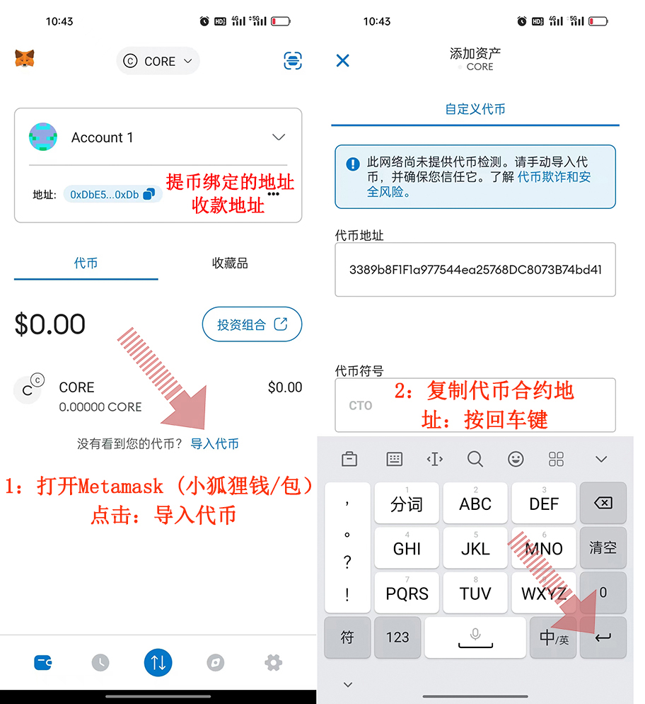 1:打開Metamask (小狐貍錢/包)點(diǎn)擊:導(dǎo)入代幣