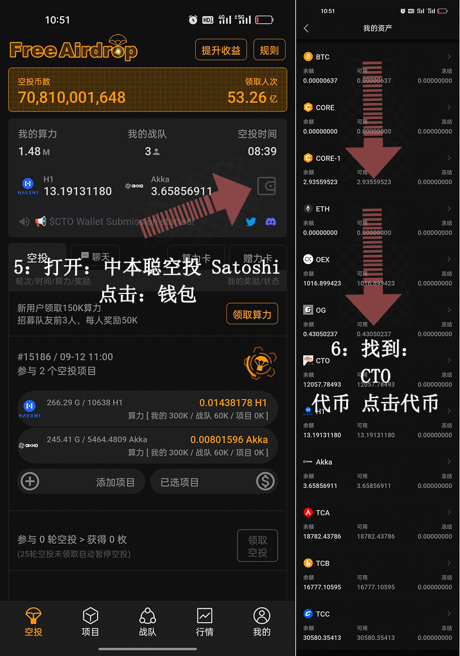 5:打開:中本聰空投 Satoshi :點(diǎn)擊:錢包