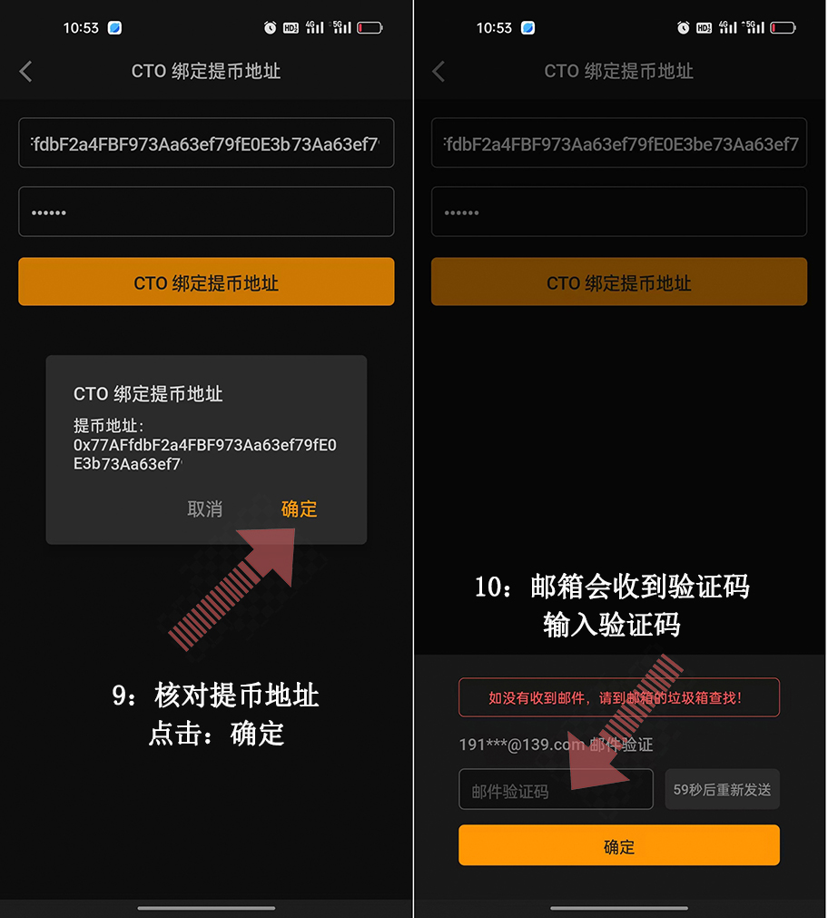 8:復(fù)制:收款地址:輸入:資金密碼:點(diǎn)擊:CTO 綁定提幣地址