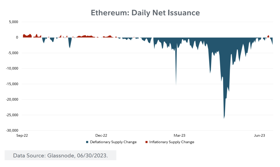 自2022年9月的以太坊合并升級(The Merge)以來,讓以太坊從原本的工作量證明機制(PoW,Proof-of-Work),轉為權益證明機制(PoS,Proof-of-Stake)。這項機制的改變,進一步讓以太坊的發(fā)行速度減緩