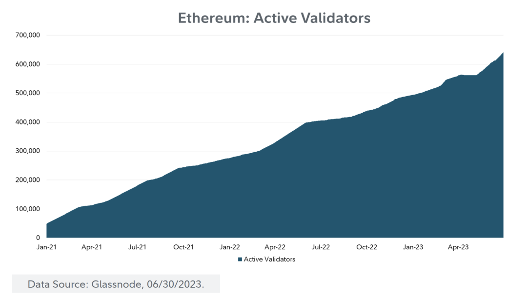 目前活躍驗證者數(shù)量已經(jīng)從2023年初的停滯期恢復,截至今日,今年以來的活躍驗證者數(shù)量增加了大約29%,其中15%是在2023年第二季度增加的。