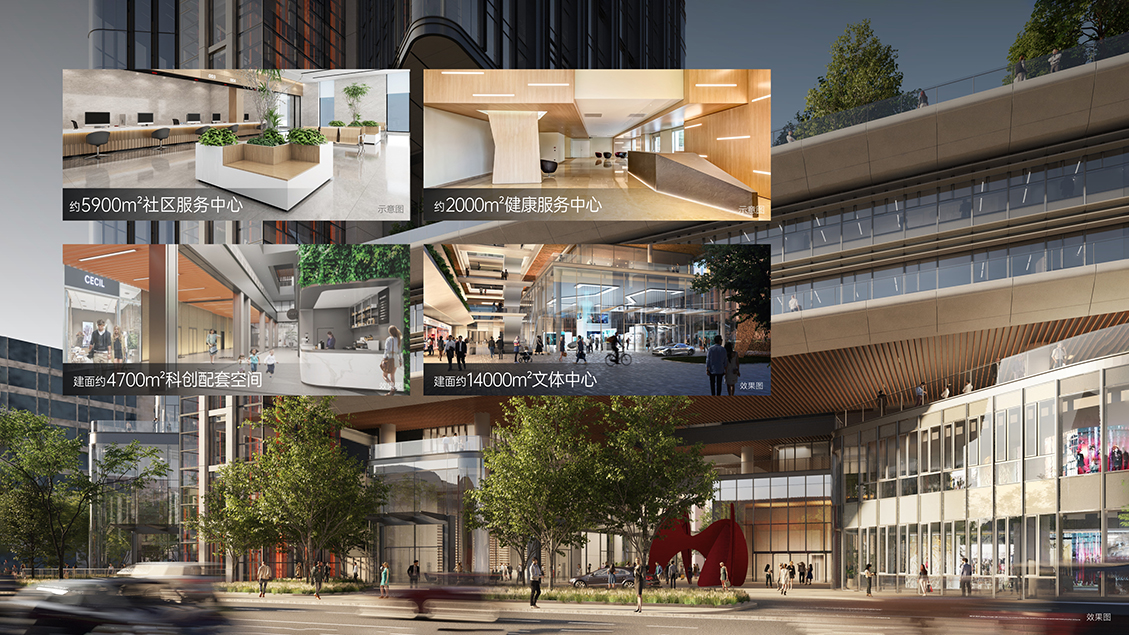 配套完善:建有約:4700平方米科創(chuàng)配套空間、約:5900平方米社區(qū)服務(wù)中心約:2000平方米:健康服務(wù)中心、毗鄰約:14000平方米:文體中心