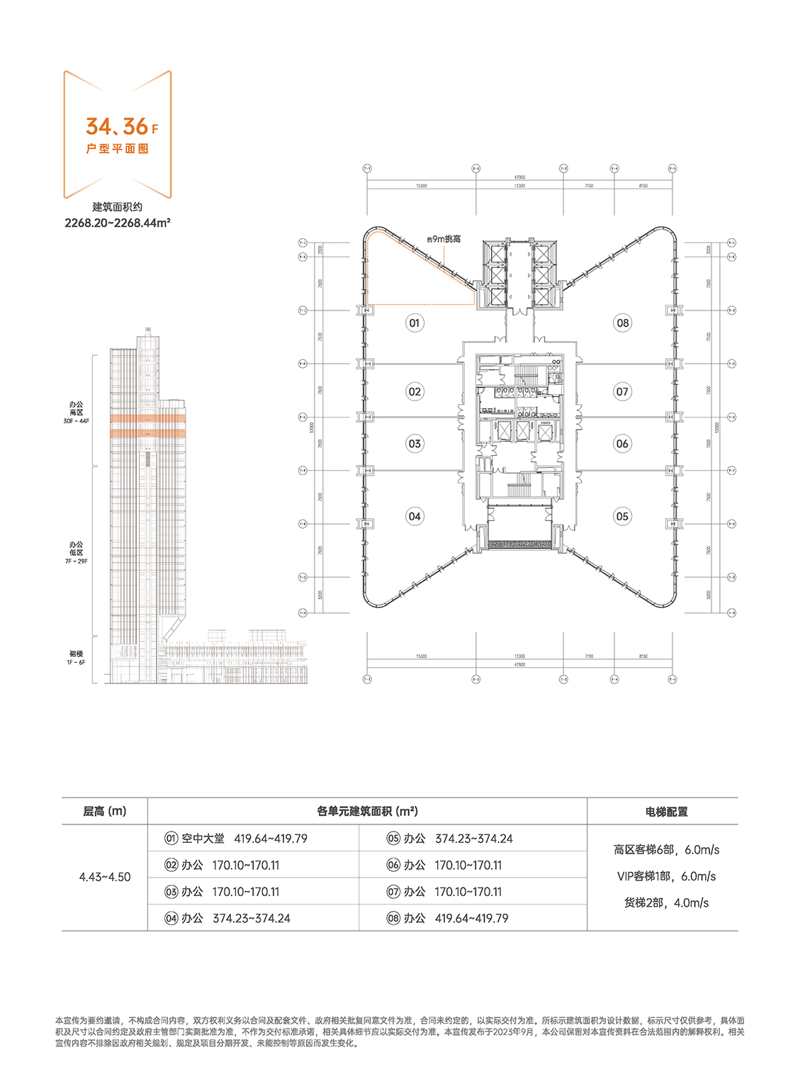 河套壹號(hào):34到36F:戶型平面圖:建筑面積約:2268.20平米到2268.44平米