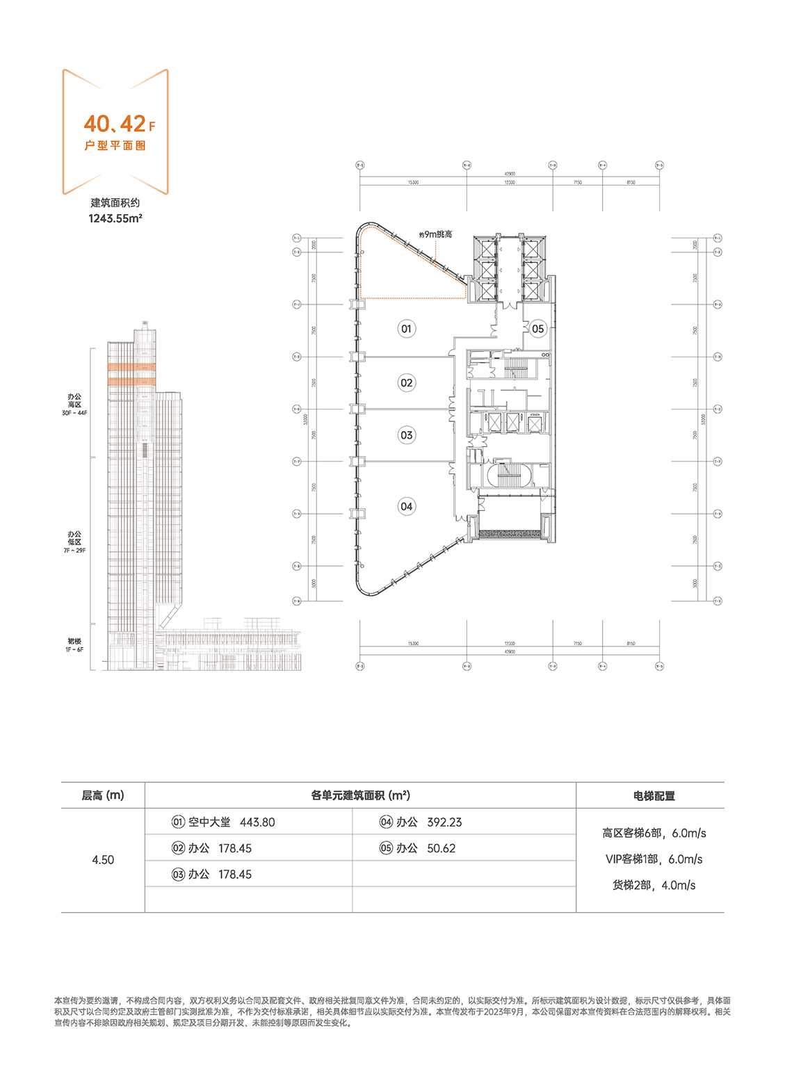河套壹號(hào):40到42F:戶型平面圖:建筑面積約:1243.55平米