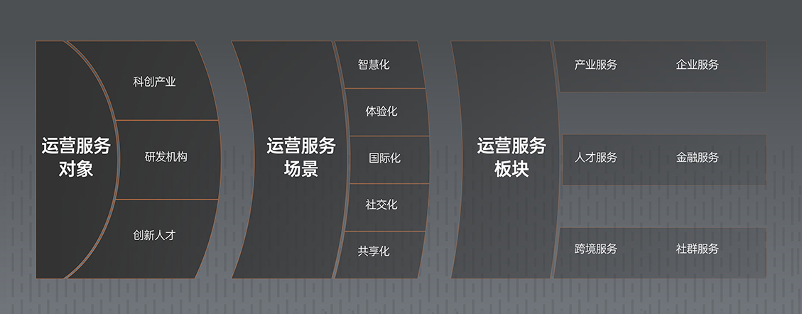 “3+5+6”全鏈?zhǔn)竭\(yùn)營(yíng)服務(wù)體系圍繞“三大對(duì)象:五大場(chǎng)景、六大板塊”聚合前沿科創(chuàng)資源、根據(jù)產(chǎn)業(yè)、企業(yè)和人才的核心需求、定制一站式創(chuàng)新運(yùn)營(yíng)服務(wù)體系、為科創(chuàng)生態(tài)注入新動(dòng)能