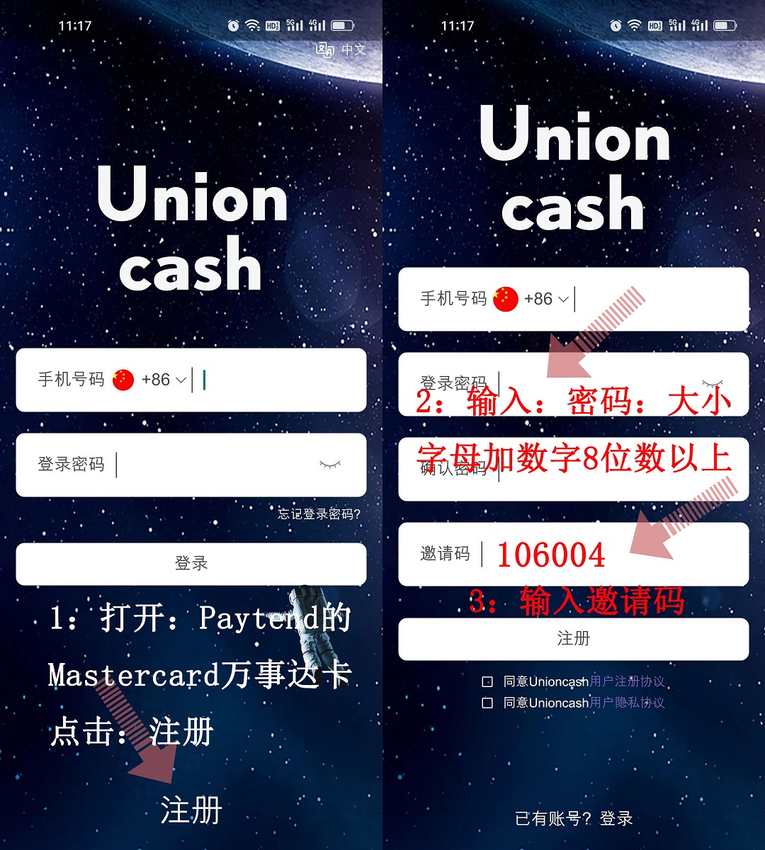 1:打開:Paytend的Mastercard萬(wàn)事達(dá)卡、點(diǎn)擊:注冊(cè)