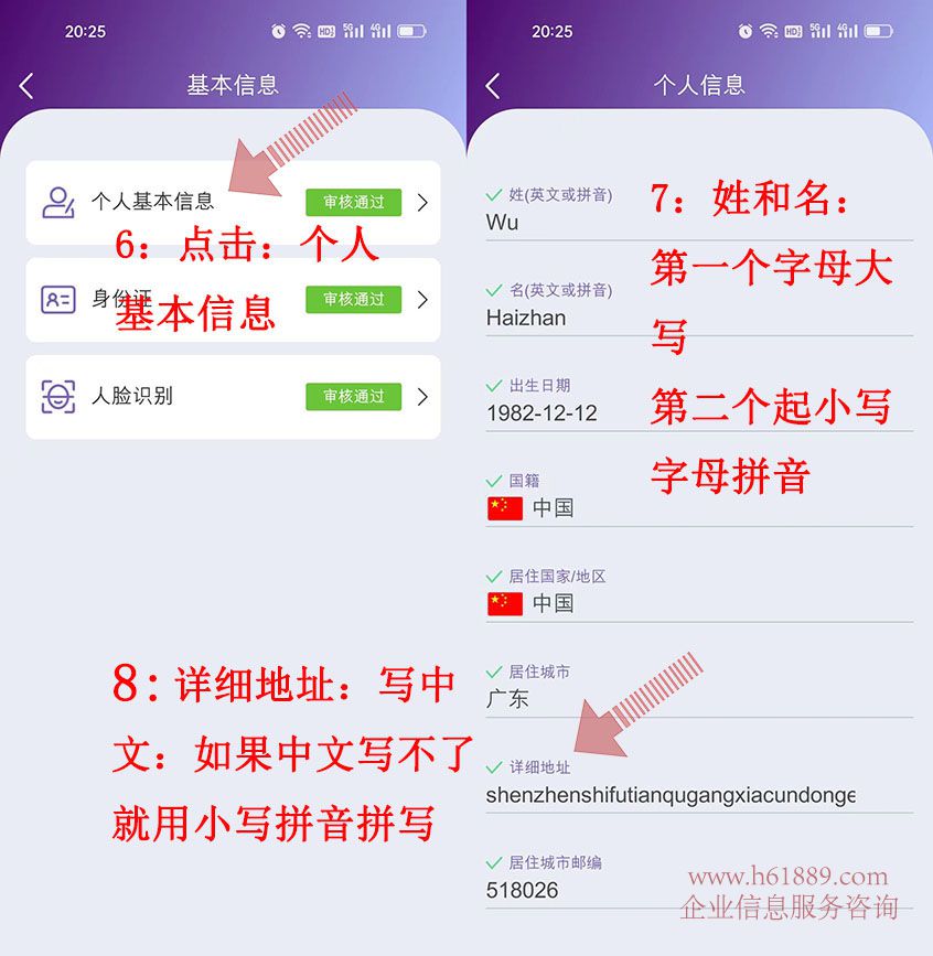 6:點(diǎn)擊:個(gè)人基本信息、7:姓和名:第一個(gè)字母大寫、第二個(gè)起小寫字母拼音、
