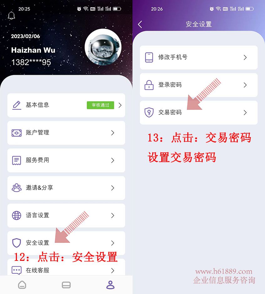 12:點(diǎn)擊:安全設(shè)置、13:交易密碼:設(shè)置交易密碼