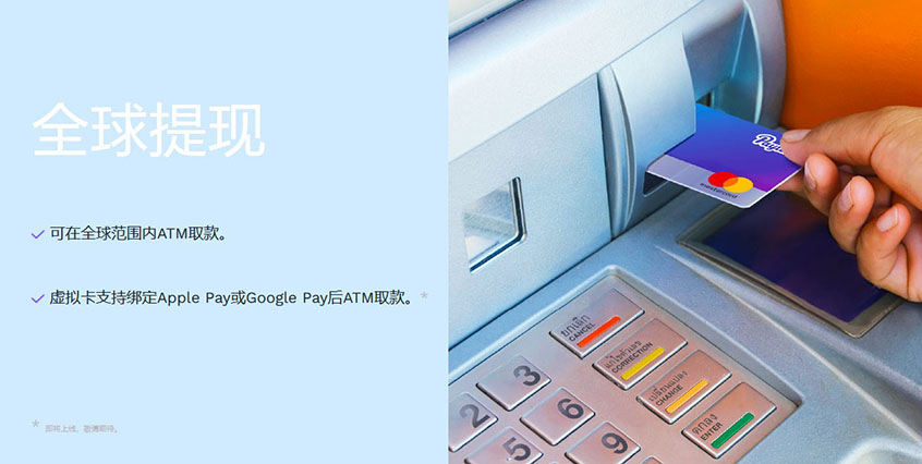 由Paytend發(fā)行的Mastercard 卡:支持充值USDT支持網(wǎng)絡(luò)包括(Tron/TRC20)、(ETH/ERC20)、充值手續(xù)費(fèi)為1%、ATM取現(xiàn)手續(xù)費(fèi)2%、內(nèi)地銀行支持Mastercard的柜員機(jī)都可以取款(人民幣)推薦銀行農(nóng)業(yè)銀行、工商銀行等、支持綁定微信美團(tuán)等內(nèi)地平臺(tái)