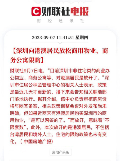 官方確認:深圳向港澳居民放開商用物業(yè)限購、商務(wù)公寓限購
