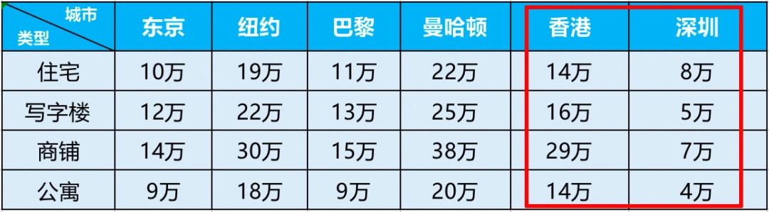 具體來看,深圳的商辦產(chǎn)品價格與香港相差近4倍,與曼哈頓相差近5倍,與東京相差近2倍