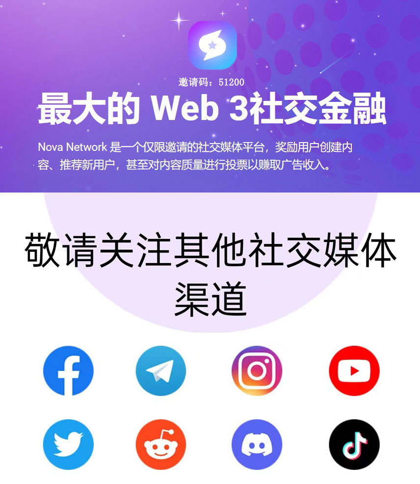 Nova Network 新星 是一個(gè)僅限邀請(qǐng)的社交媒體平臺(tái)、獎(jiǎng)勵(lì)用戶創(chuàng)建內(nèi)容、推存新用戶