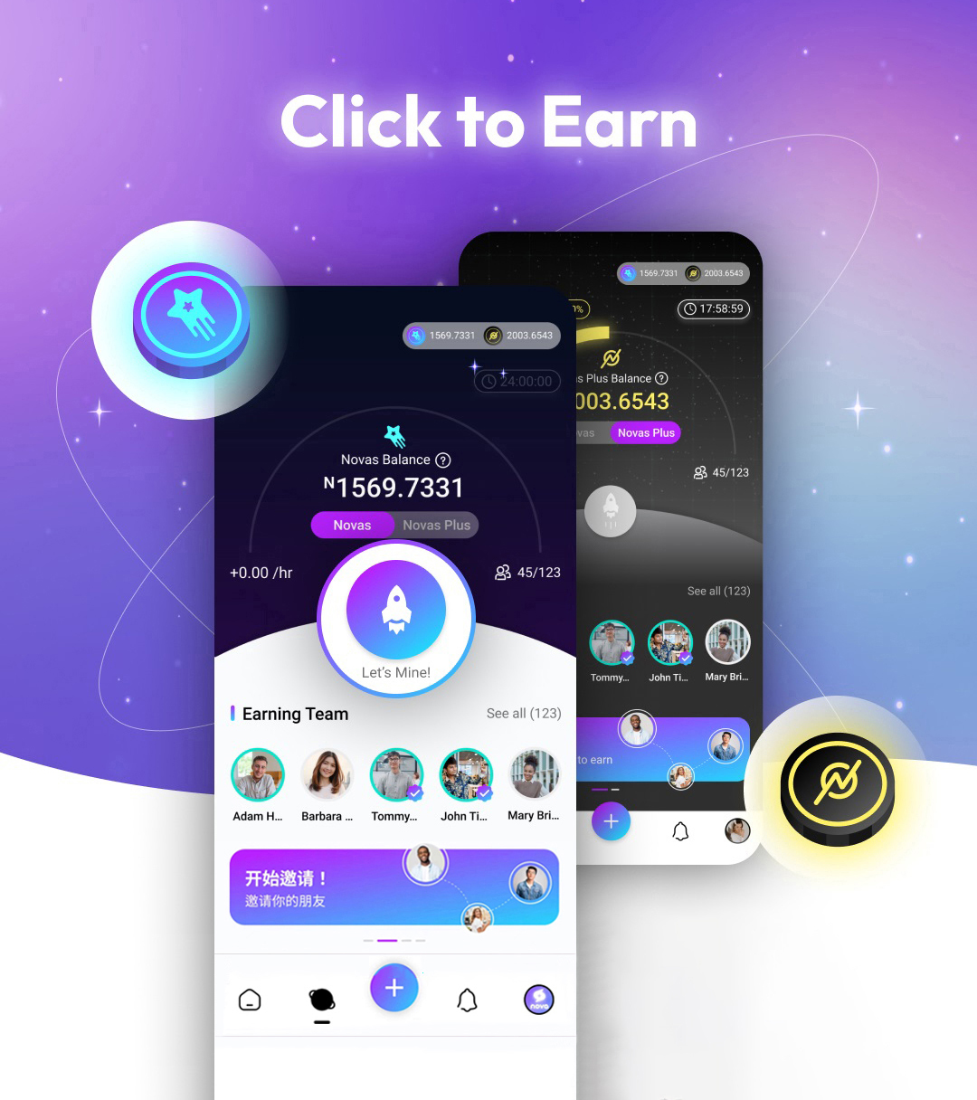 獎金收益率沒有上限,這意味著您邀請的新用戶越多,并且確保他們保持活躍(活躍的意思是他們也啟動了他們的 24 小時賺取活動),您可以賺取的 Novas Plus 代幣就越多