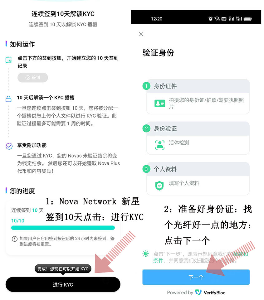 1:Nova Network 新星 簽到10天點擊:進行 KYC