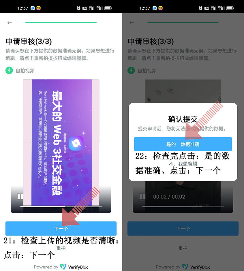 22:檢查完點擊:是的、數(shù)據(jù)準確:點擊:下一個