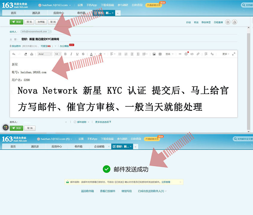 Nova Network 新星 KYC 認證 提交后、馬上給官方寫郵件、催官方審核、一般當天就能處理