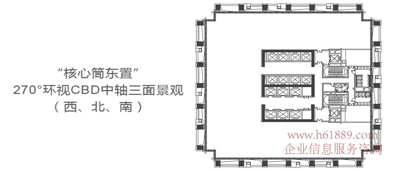 核心筒東置:270°環(huán)視CBD中軸三面景觀【凍 西 北 南】