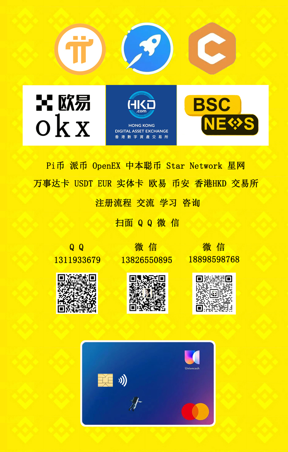 萬事達(dá)卡 USDT EUR 實體卡 歐易 幣安 香港HKD 交易所