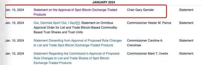 2024年1月10日:比特幣現(xiàn)貨ETF獲得歷史性突破、終于被美國(guó)SEC批準(zhǔn)