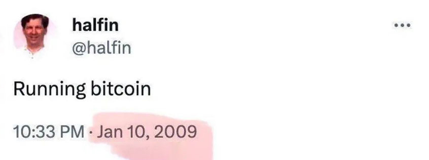比特幣先驅(qū)哈爾芬尼發(fā)布了關(guān)于比特幣的第一條推文“Running bitcoin”